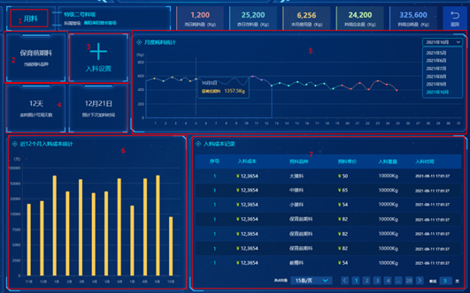 4、通過實時采集的料塔用料數(shù)據(jù),結(jié)合豬日齡與標(biāo)準(zhǔn)采食量,實時監(jiān)測和調(diào)控用料,確保生豬重量達標(biāo);
