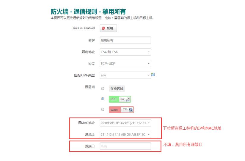 設(shè)置思路:首先添加規(guī)則禁止工控機(jī)訪(fǎng)問(wèn)所有網(wǎng)絡(luò),然后再添加規(guī)則只允許工控機(jī)訪(fǎng)