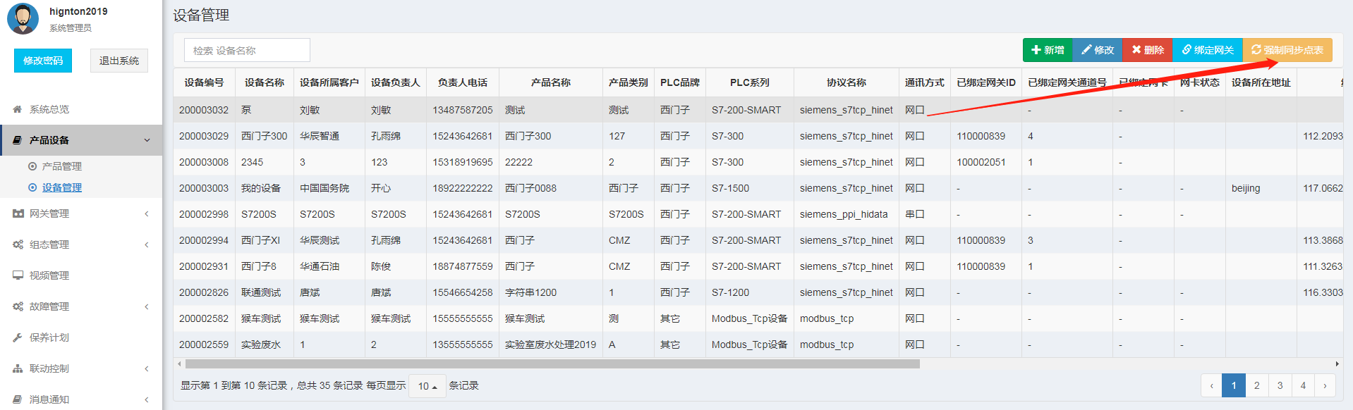 1. 是否強(qiáng)制同步點表,以思普云平臺采集數(shù)據(jù)為例,思普云平臺的設(shè)備管理處,選擇設(shè)備點擊【強(qiáng)制同步點表】。