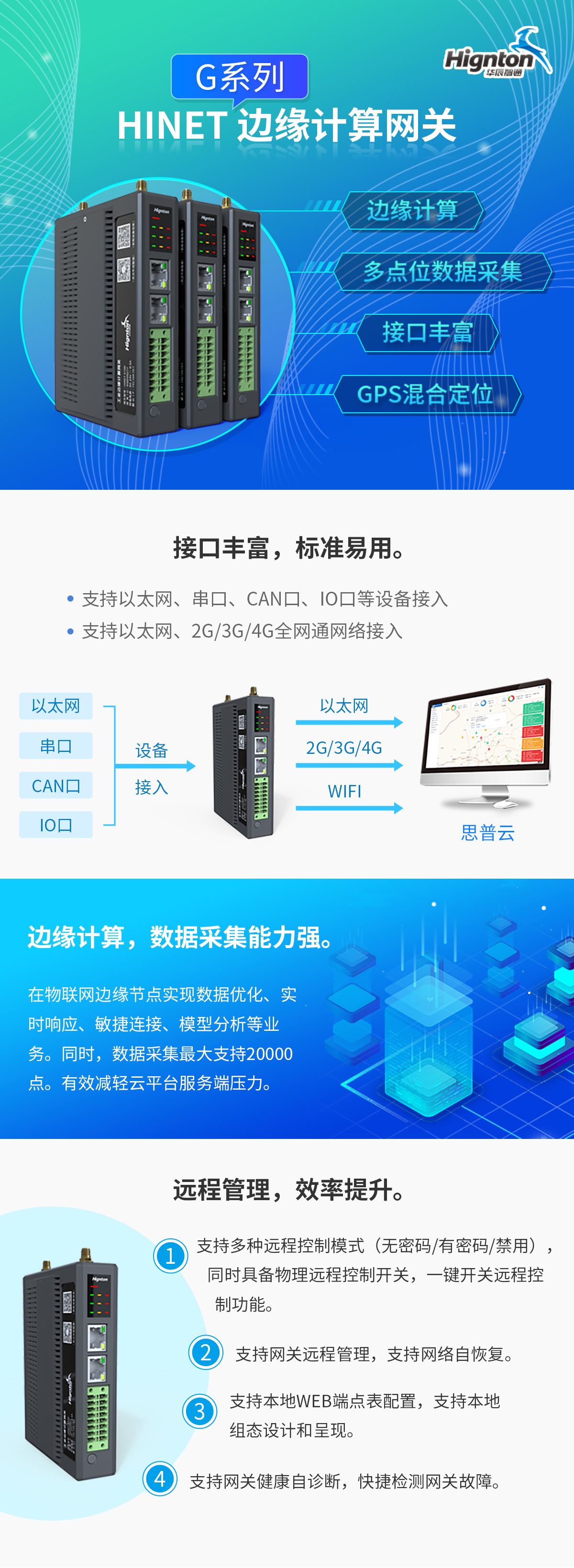 G系列邊緣計算網(wǎng)關是華辰智通最新推出的—款面向工業(yè)現(xiàn)場設備接入、數(shù)據(jù)采集、設備監(jiān)控的工業(yè)級邊緣計算網(wǎng)關。擁有以太網(wǎng)、串口、CAN口、IO口、RS232、RS485、RS422等豐富的接口,支持以太網(wǎng)、WIFI、4G網(wǎng)絡接入方式,支持99%以上PLC品牌,可以遠程調試,數(shù)據(jù)采集和控制, 可滿足絕大部分工業(yè)應用場景及工業(yè)設備接入。