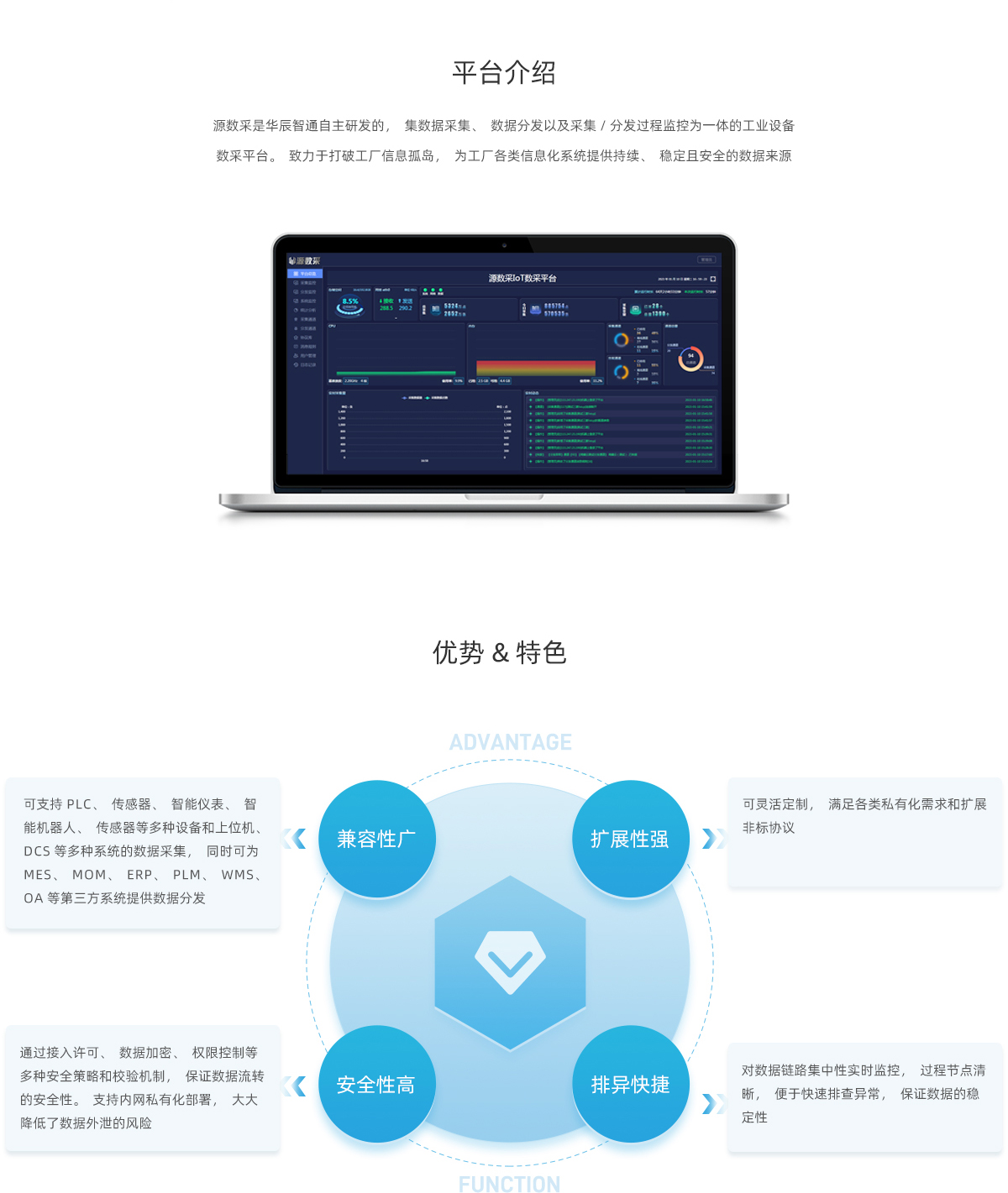 “源數(shù)采”是華辰智通自主研發(fā)的工業(yè)設備數(shù)據(jù)采集平臺,集數(shù)據(jù)采集、數(shù)據(jù)分發(fā)以及采集/分發(fā)過程監(jiān)控為一體的私有化IoT數(shù)采平臺。致力于打破工廠信息孤島,為工廠各類信息化系統(tǒng)提供持續(xù)、穩(wěn)定且安全的數(shù)據(jù)來源,為工業(yè)企業(yè)的智能化轉型提供助力。