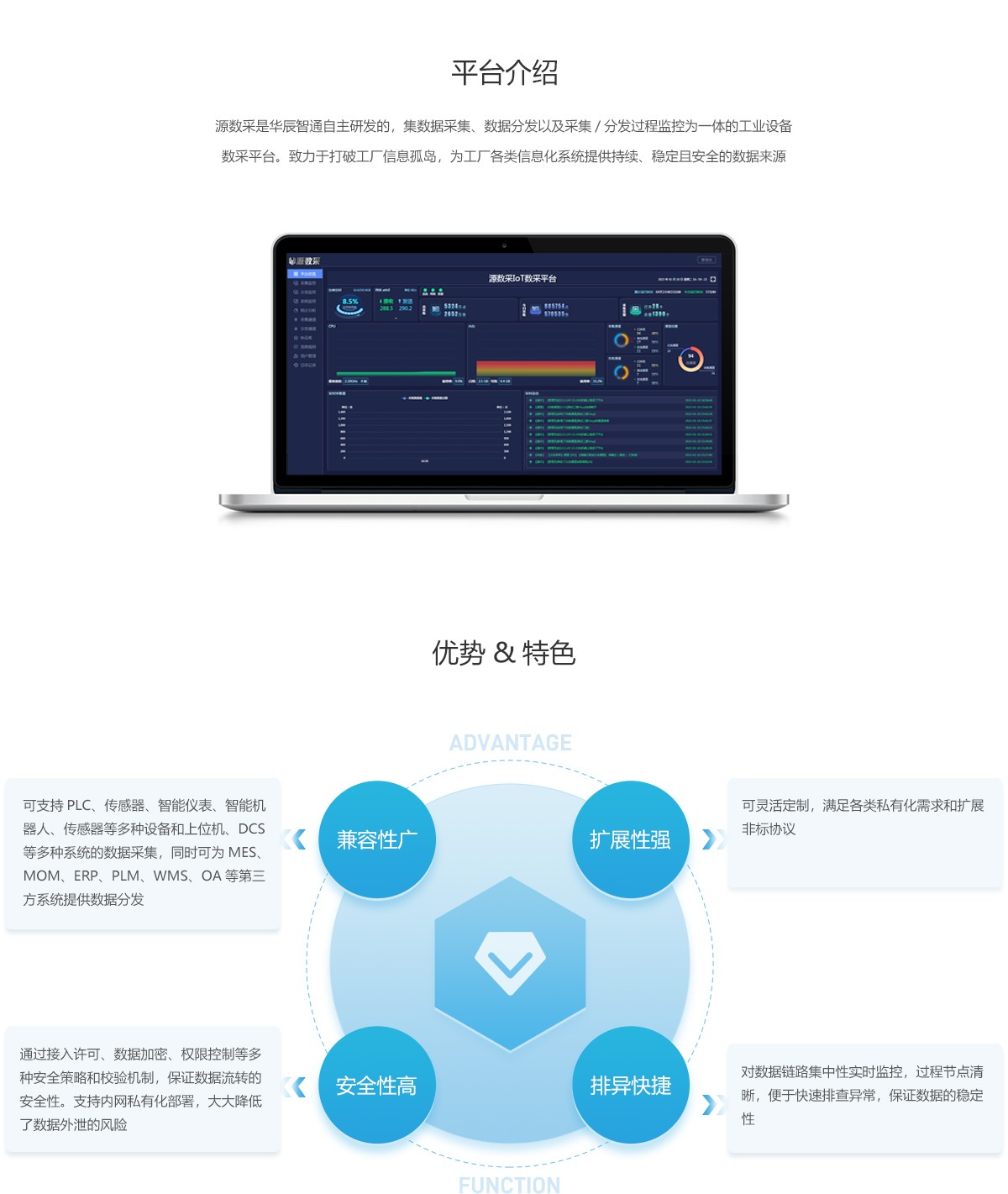 數(shù)據(jù)采集是我們最核心的業(yè)務(wù)之一。通過(guò)對(duì)設(shè)備的數(shù)據(jù)采集,我們可以對(duì)設(shè)備的運(yùn)行情況進(jìn)行深入分析,發(fā)現(xiàn)潛在的問(wèn)題或改進(jìn)點(diǎn),從而實(shí)現(xiàn)設(shè)備智能化運(yùn)營(yíng)。接入我們的數(shù)據(jù)采集方案后,客戶可以實(shí)現(xiàn)設(shè)備數(shù)據(jù)的全面記錄和存儲(chǔ),建立完整的數(shù)據(jù)庫(kù),并與其他業(yè)務(wù)系統(tǒng)進(jìn)行數(shù)據(jù)交換和共享。
